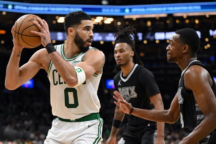 Tatum had 21 points, eight rebounds and four assists in the first half, when the Spurs were 3-of-21 from 3-point range.