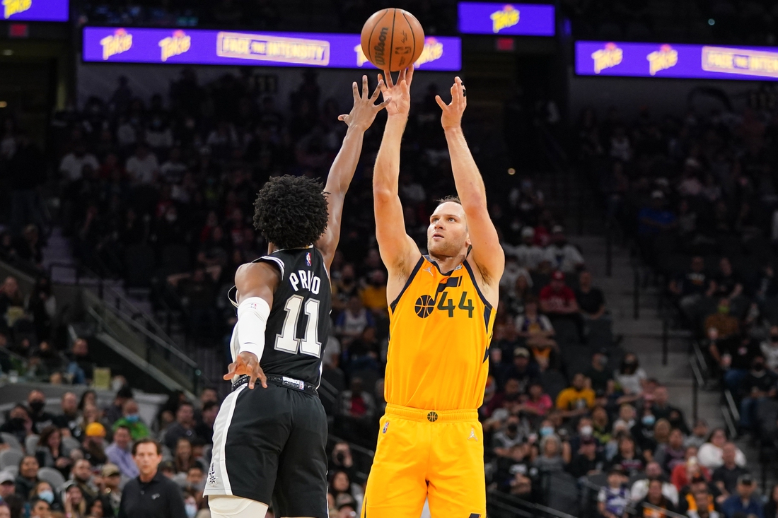 Bogdanovic led the Jazz with 11 points in the first half, while White and Vassell paced San Antonio with eight apiece.