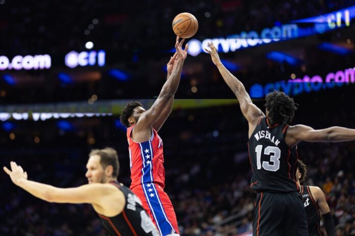 Embiid drained a trey from the top of the key with 8:43 left in the third for a 72-43 lead.