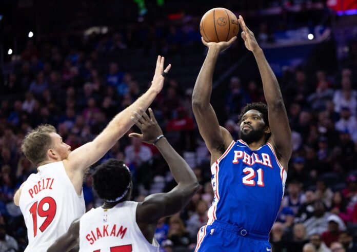 Joel Embiid had 28 points, 13 rebounds and seven assists to lift the host Philadelphia 76ers past the Toronto Raptors 114-99 on Thursday.