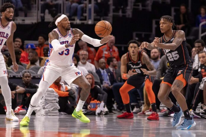 Tobias Harris contributed 24 points and five rebounds and De’Anthony Melton added 10 points.