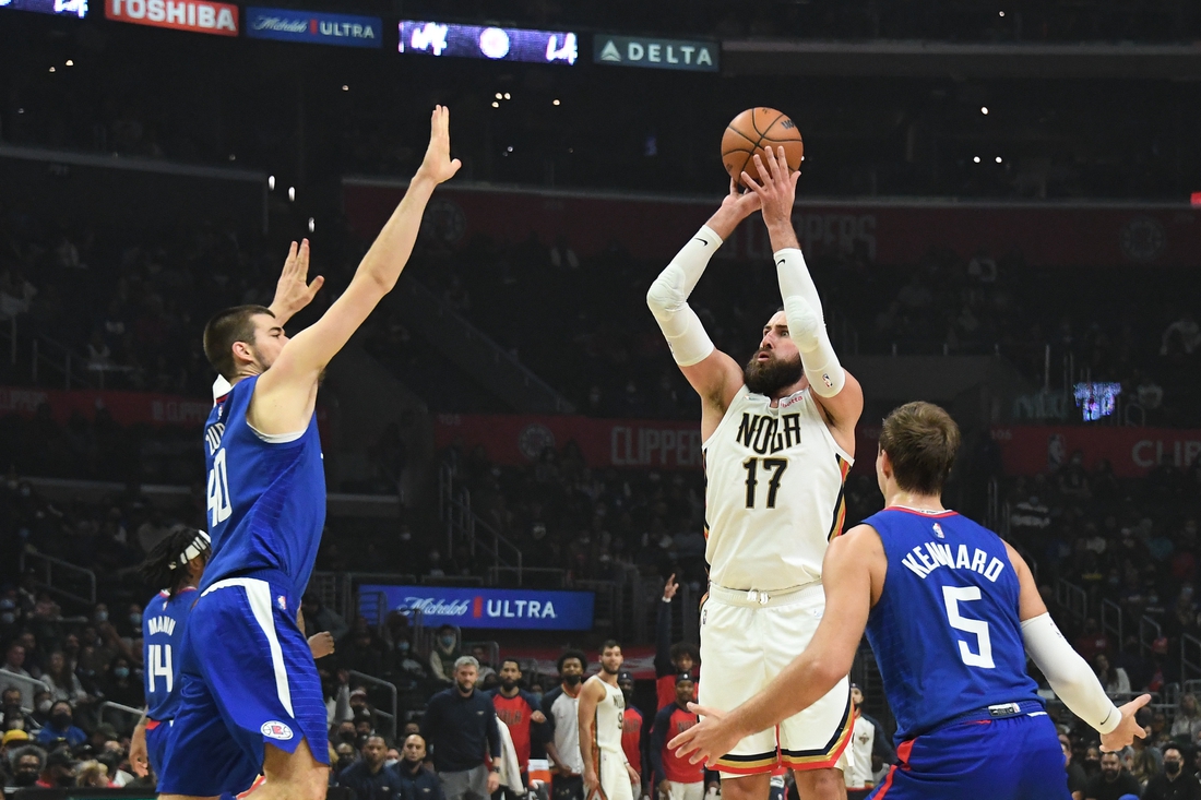 Valanciunas sank 3-pointers on three straight possessions to make it 60-39 with 4:47 left in the half, and the Pelicans ultimately took a 15-point lead into the break.