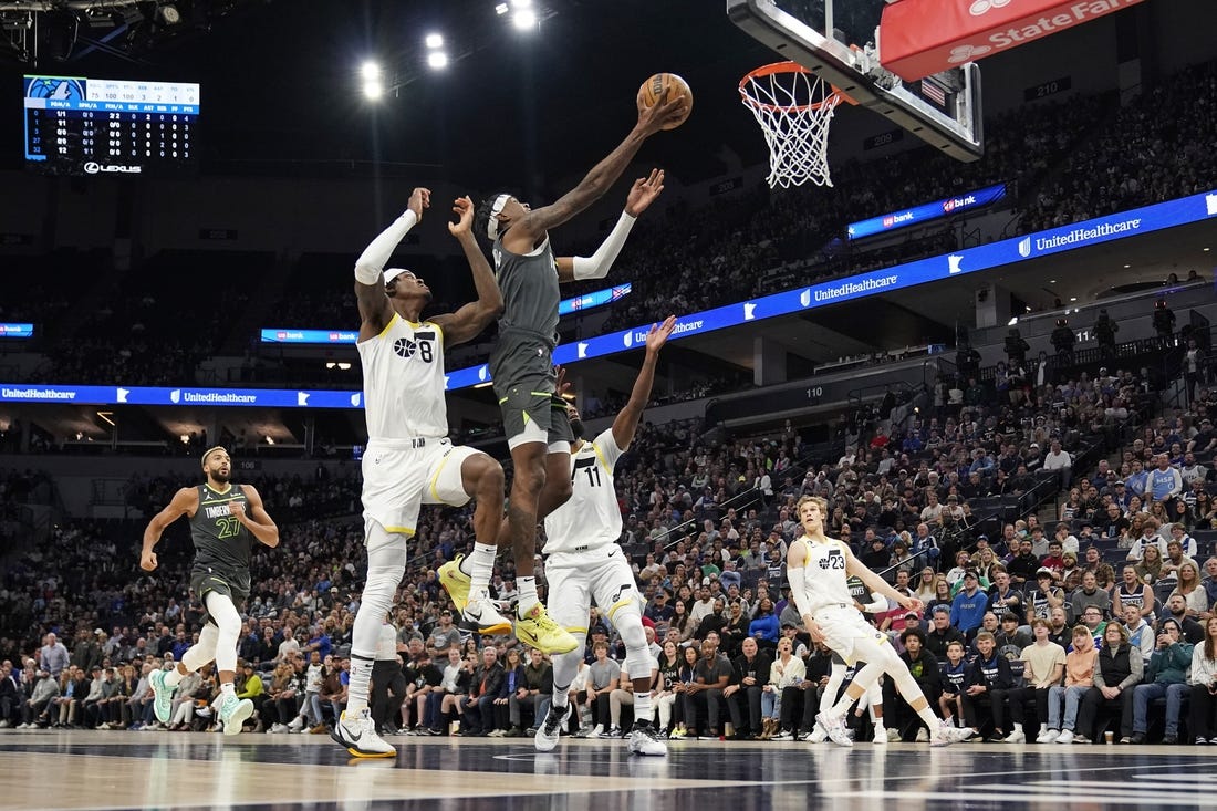Rudy Gobert, who was traded from Utah to Minnesota in a massive deal that sent multiple players and four first-round picks to the Jazz, hauled in 23 rebounds but only scored nine points.