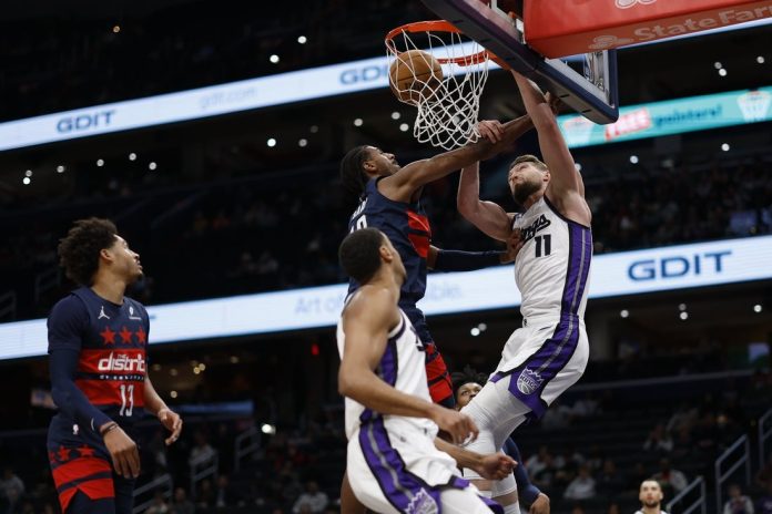 LaVine sank a pair of free throws to forge a tie at 42 before Gill drained a 3-pointer to ignite Washington’s 11-0 run. Sacramento, however, responded with a flourish, as Malik Monk scored four of the team’s 10 straight points before Poole split the defense for a layup just before the buzzer to give the Wizards a 55-52 lead at halftime.