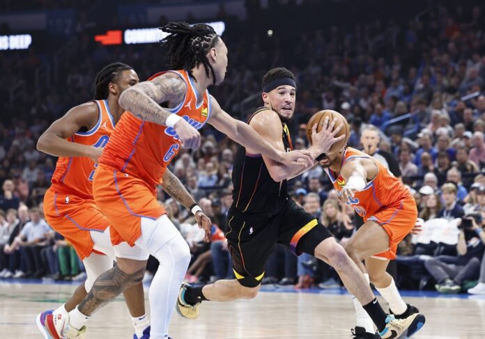 The Thunder led 34-32 after a fast-paced first quarter. Oklahoma City shot 53.8 percent from the floor while Phoenix shot 54.5, including a 6-of-12 mark from beyond the arc.