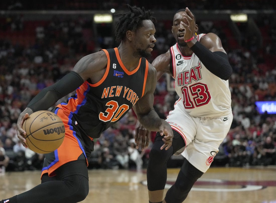 Late in the fourth, after Randle’s final 3-pointer, Miami had one more chance, but Mitchell Robinson intercepted an in-bounds pass to end the game.