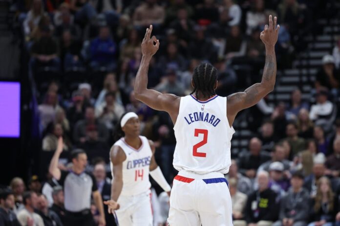 Leonard sank his fourth 3-pointer without a miss in the first half to make it 56-45 with 28.2 seconds remaining, and Terance Mann sank another trey at the buzzer to give Los Angeles a 13-point cushion.