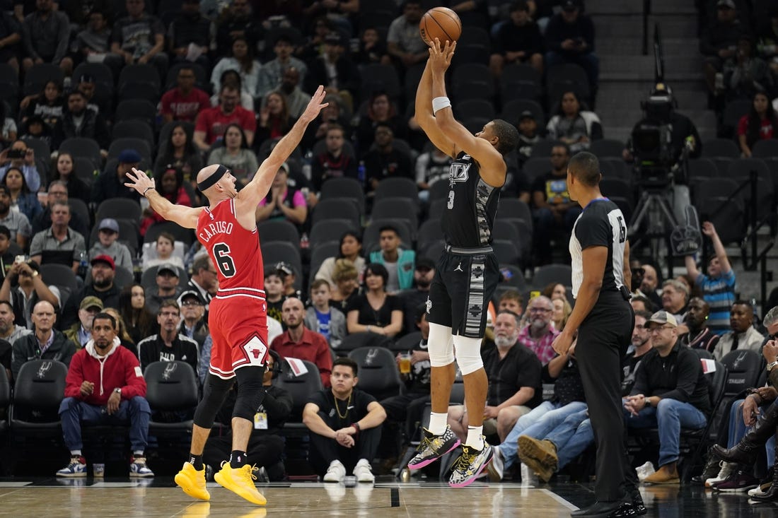 Chicago surged to the lead early in the second quarter and was up by as many as nine points before the Spurs reeled off 10 straight points, capped by a 3-pointer by Sochan. San Antonio took a 62-60 edge to the break.
