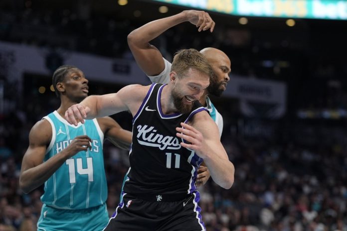 Sacramento’s Zach LaVine poured in 25 points to go with 10 rebounds and Domantas Sabonis racked up 24 points and 11 rebounds to help the Kings snap a three-game losing streak by thumping the host Charlotte Hornets 125-102 on Friday night.