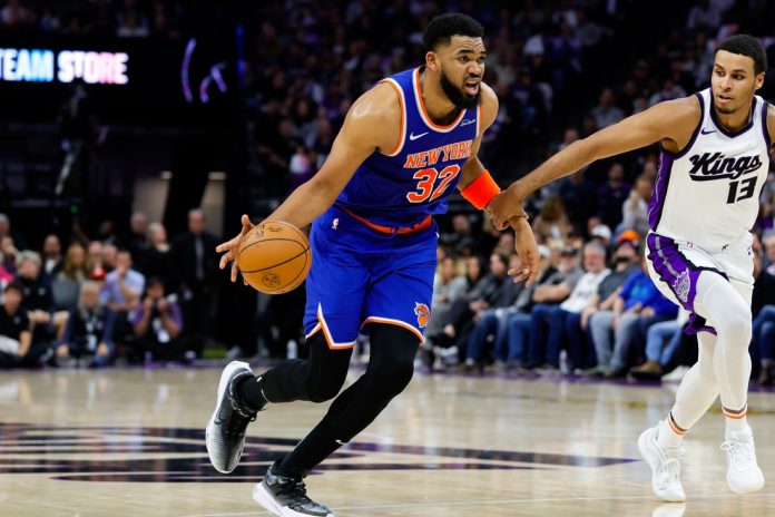 Karl-Anthony Towns recorded 26 points and nine rebounds and OG Anunoby added 24 points, eight assists, seven rebounds and five steals to help the New York Knicks roll to a 133-104 victory over the host Sacramento Kings on Monday night.