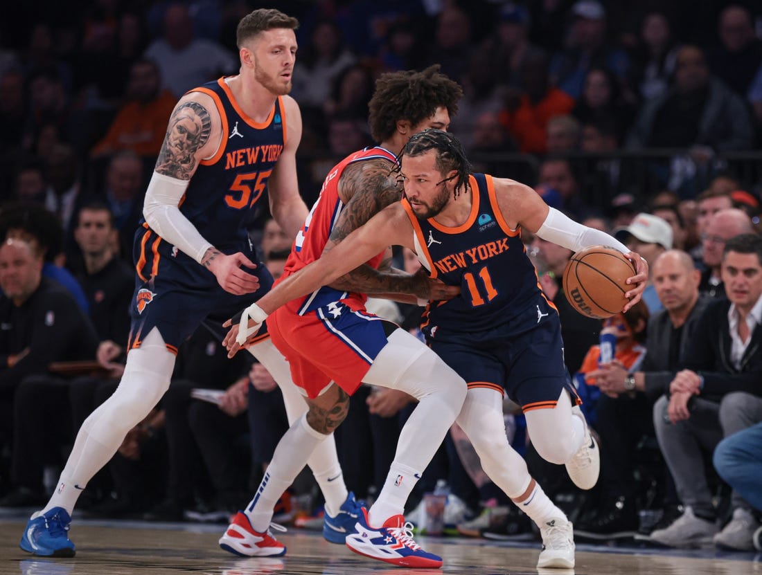 Josh Hart stole the inbounds pass from Tyrese Maxey and dished to DiVincenzo, who missed a 3-point try. New York’s Isaiah Hartenstein pulled down the rebound and kicked the ball back out to DiVincenzo, who drained a 3-pointer from the top of the key.