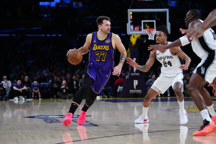 Luka Doncic had 21 points, 14 assists and nine rebounds, Austin Reaves added 30 points and the Los Angeles Lakers extended their home winning streak to eight games with a 125-109 victory over the San Antonio Spurs on Monday.