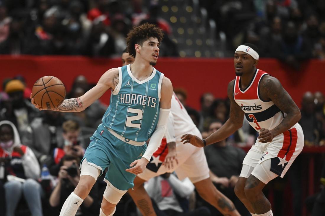 Terry Rozier scored a season-high 32 points, and it was his eighth 3-pointer of the game that gave the Hornets a five-point lead with 13 seconds left. LaMelo Ball finished with 28 points, 13 rebounds, seven assists and three steals, and Gordon Hayward had 16 points as Charlotte defeated the Wizards for the second time in six days.