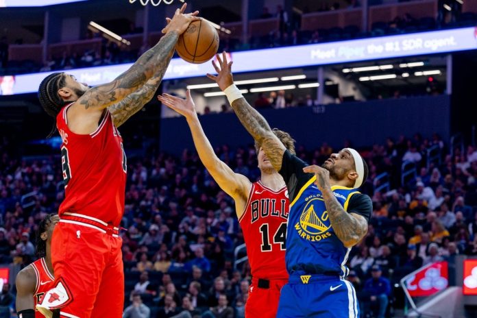 Seeking to end a two-game losing streak, the Warriors began their late push after falling behind 103-91 following a Buzelis 3-pointer with 7:58 to go. They managed to build an eight-point lead with just 1:31 left, but Chicago dominated the final 6 1/2 minutes.