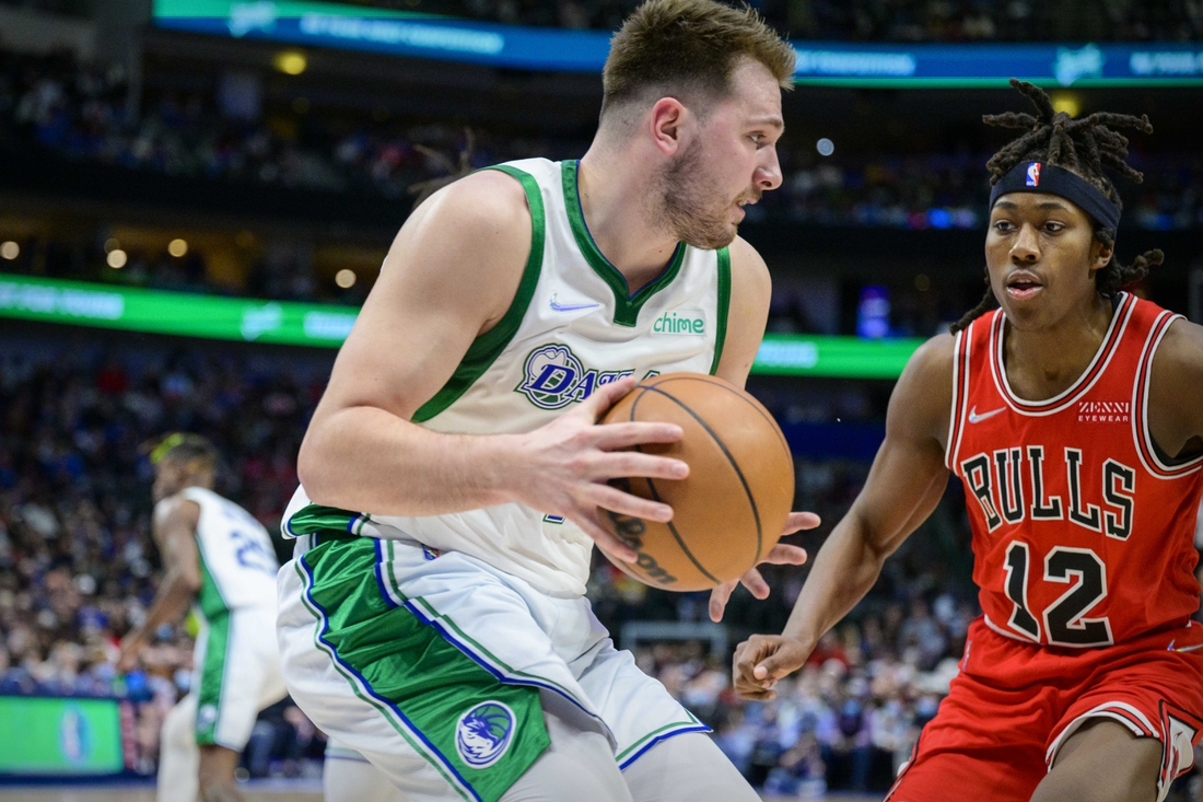 Luka Doncic recorded a triple-double of 22 points, 14 rebounds and 14 assists, and the Dallas Mavericks extended their winning streak to six games while snapping the Chicago Bulls’ streak of nine games, 113-99, Sunday in Dallas.
