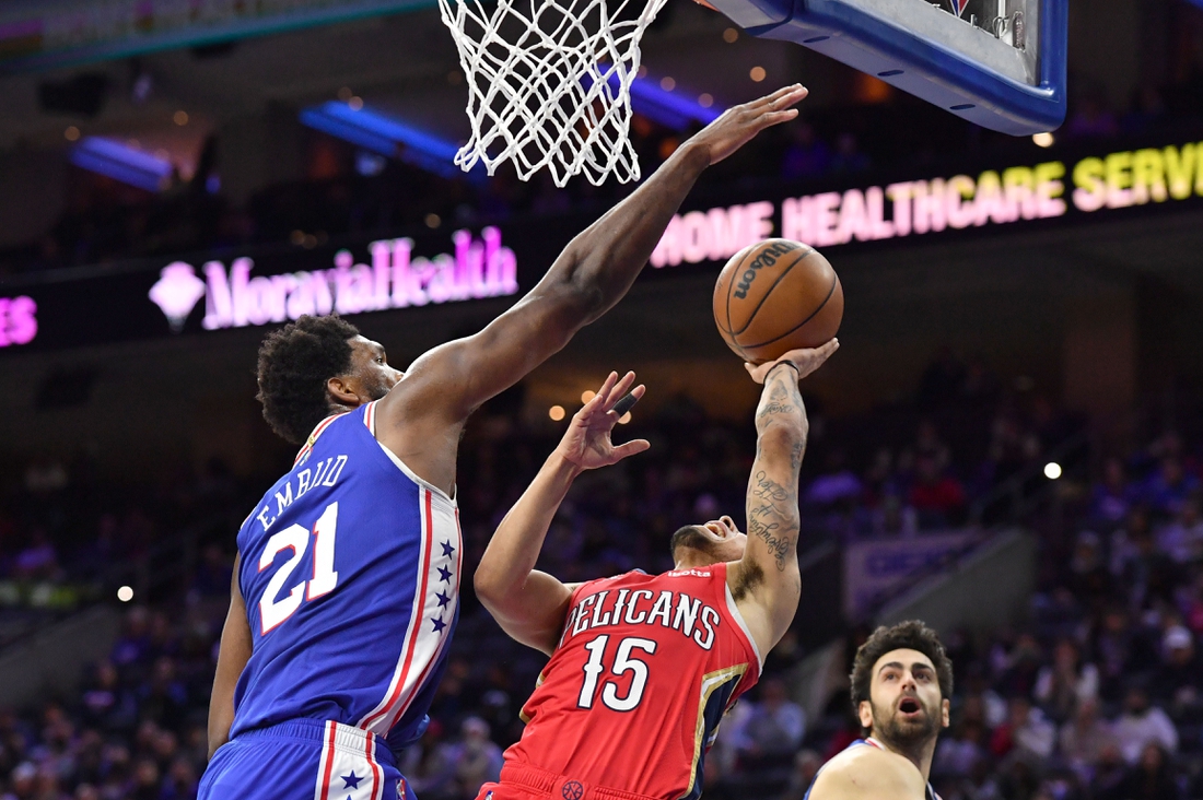 Embiid had 42 points, 14 rebounds, four assists and four blocked shots as the Philadelphia 76ers defeated the New Orleans Pelicans 117-107 on Tuesday. It was his sixth game with at least 40 points and 10 rebounds this season.