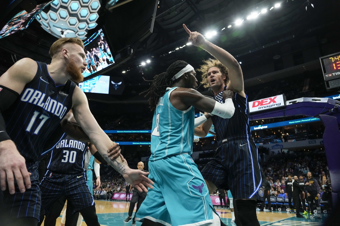 The incident began when Charlotte’s Jalen McDaniels fouled Orlando’s R.J. Hampton on a drive to the basket and the pair had to be separated.