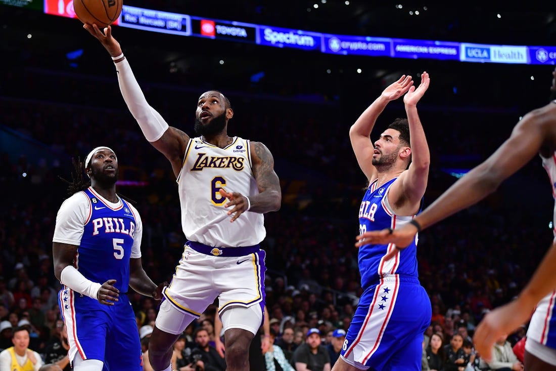 James looked determined early, scoring 16 points in the first quarter and reaching 38,001 points on a jumper from the top of the key with 5:43 remaining in the opening period. In a tight game throughout, the Lakers led 58-57 at halftime before the 76ers went ahead 86-83 through three quarters.