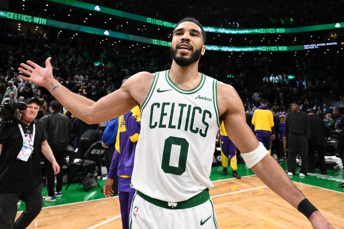 Jayson Tatum had 40 points, 12 rebounds and eight assists to help the Boston Celtics extend their winning streak to four games by beating the visiting Los Angeles Lakers 111-101 on Saturday night.
