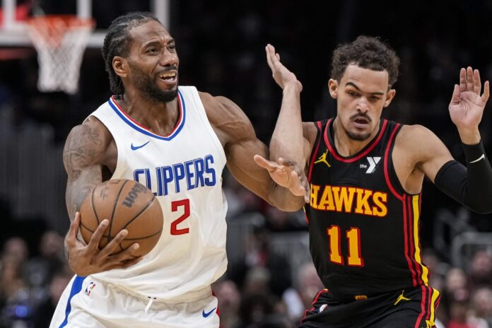 Kawhi Leonard scored 10 of his 36 points in the final five minutes to help the visiting Los Angeles Clippers hold off the Atlanta Hawks 149-144 on Monday and extend their winning streak to four games.