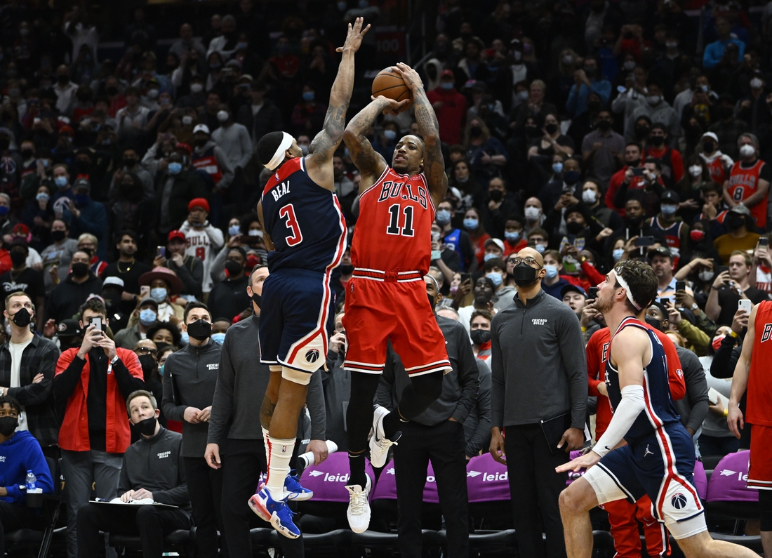 DeMar DeRozan knocked down a game-winning, buzzer-beating 3-pointer for the second time in as many nights to cap the Chicago Bulls’ come-from-behind, 120-119 defeat of the host Washington Wizards on Saturday.