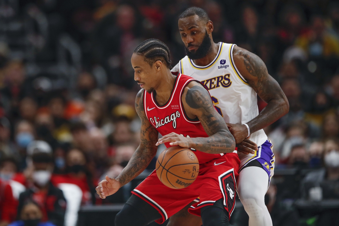 DeMar DeRozan scored 19 of his game-high 38 points in the fourth quarter and Nikola Vucevic registered a double-double of 19 points and 13 rebounds to boost the host Chicago Bulls to a 115-110 win against the Los Angeles Lakers on Sunday.