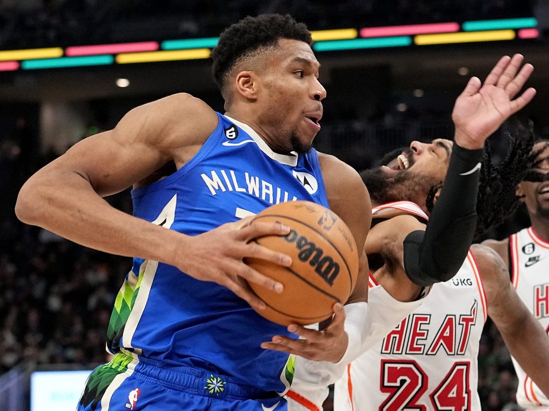 Giannis Antetokounmpo recorded a triple-double of 35 points, 15 rebounds and 11 assists as the host Milwaukee Bucks recorded their first win in three tries against the Miami Heat this season with a 123-115 decision on Saturday.