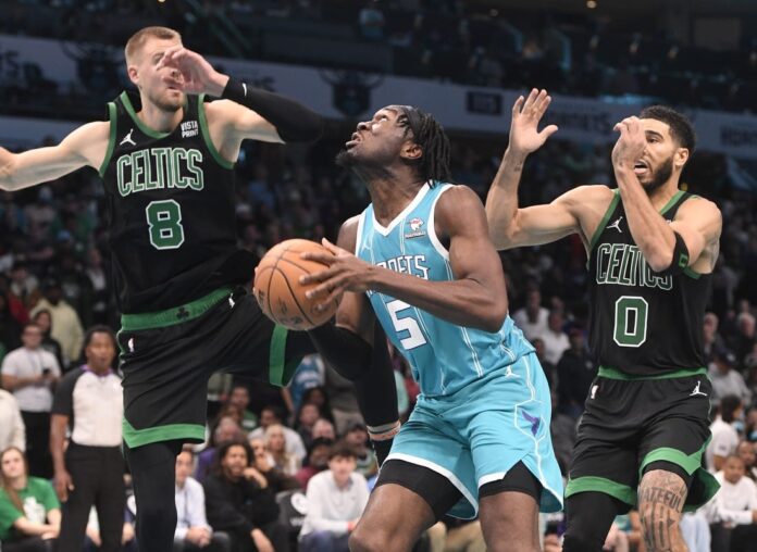 Charlotte delivered a startling fourth-quarter comeback, scoring the last nine points in regulation over the final two minutes, en route to snapping a four-game losing streak. LaMelo Ball contributed 36 points, nine rebounds and eight assists for the Hornets. Ex-Celtic Gordon Hayward had 20 points.