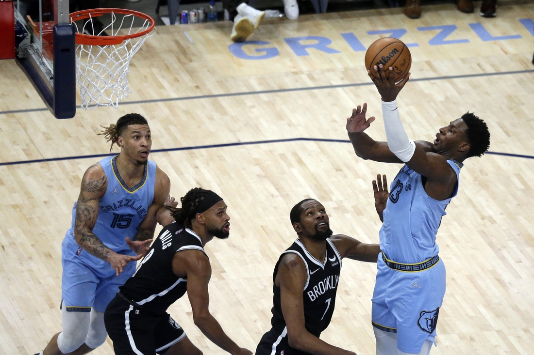 The Nets fell despite getting 43 points from Kyrie Irving and 35 from Kevin Durant, and despite Memphis playing without Ja Morant, who sat out a second straight game due to a sore right knee.