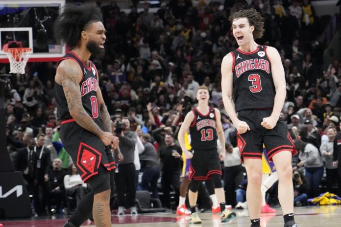 The Bulls trailed 115-110 with 12.6 seconds remaining before delivering down the stretch with a wild sequence of plays. Patrick Williams and Coby White hit 3-pointers for Chicago before Los Angeles’ Austin Reaves made a layup with 3.3 seconds left, setting the stage for Giddey’s heroics.