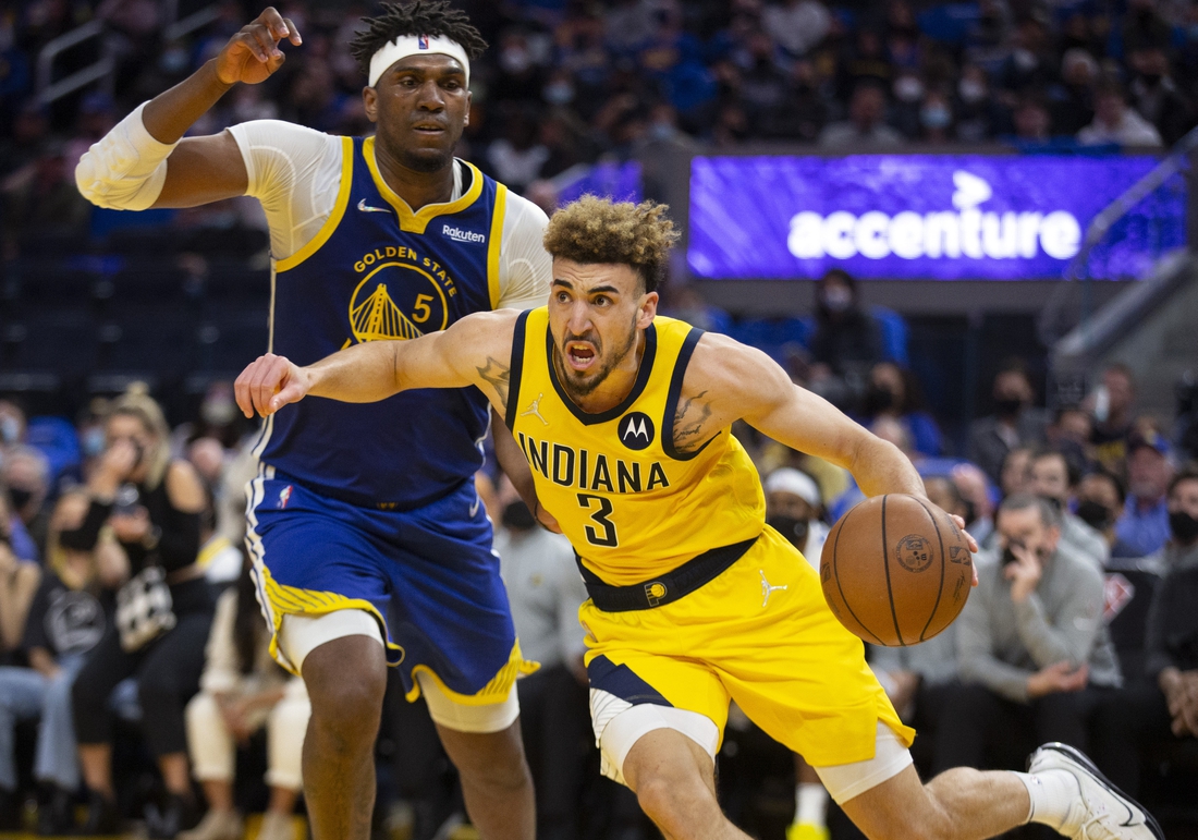Keifer Sykes, getting an extended opportunity with Indiana’s starting backcourt out of action, contributed five points to a 10-0 burst in overtime that allowed the short-handed Pacers to shock the Golden State Warriors 121-117 on Thursday night in San Francisco.