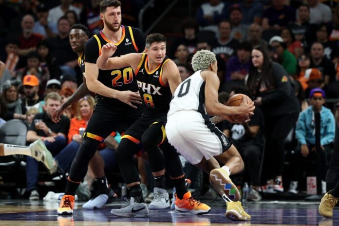 The Suns led by 18 points at halftime and by 13 heading into the fourth quarter. San Antonio did not relent, with a jumper by rookie phenom Victor Wembanyama cutting its deficit to 114-111 with 49 seconds left.