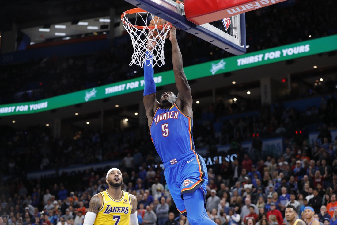 Up three in the final minute, Oklahoma City had a timeout remaining but didn’t use it, and Gilgeous-Alexander couldn’t get the ball across halfcourt in time, giving the ball back to Los Angeles with 16.8 seconds remaining. Malik Monk then missed a 3-pointer, the Thunder gave up the ball again, and Carmelo Anthony missed another.