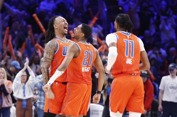 Shai Gilgeous-Alexander scored 33 points to lead the Thunder, but Wiggins took over in the fourth as Oklahoma City outscored New York 37-19. Wiggins hit first 3-pointers in the quarter.