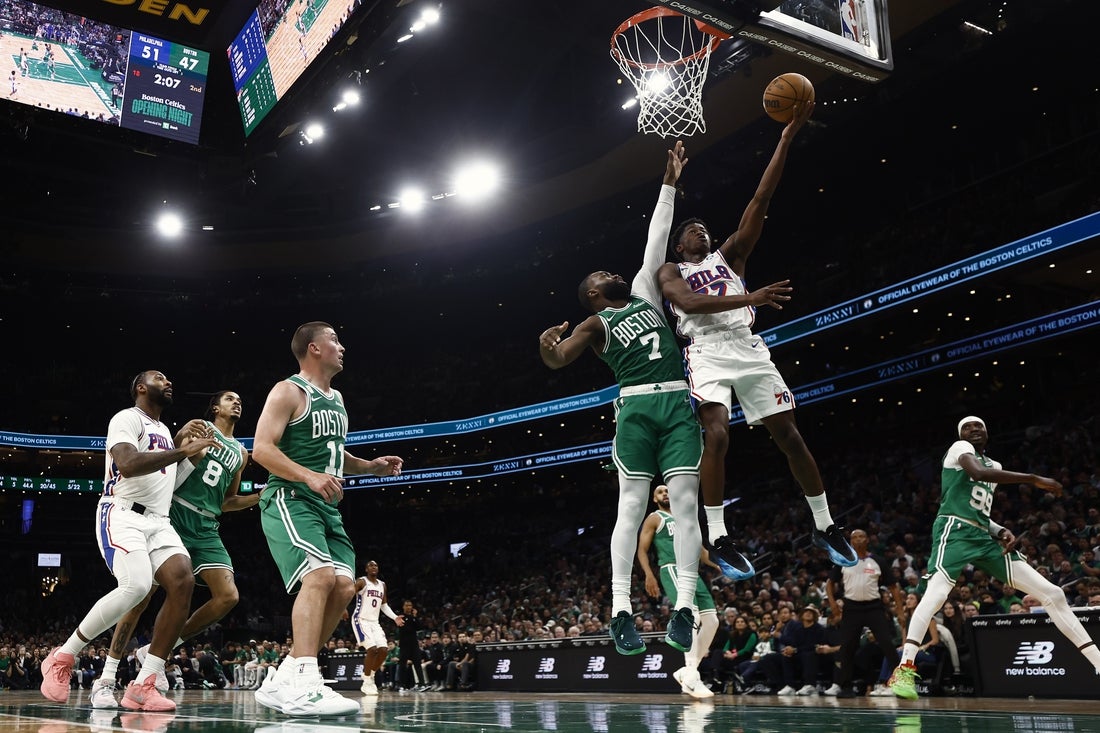 Tyrese Maxey tossed in a game-high 40 points and rookie VJ Edgecombe got off to a historic start with 34 to lead the visiting Philadelphia 76ers to a 117-116 victory over the Boston Celtics on Wednesday night in the NBA opener for each team.