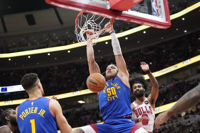 Reggie Jackson scored 25 points and Michael Porter Jr. added 17 to lift the short-handed Denver Nuggets to a 114-106 victory against the host Chicago Bulls on Tuesday.