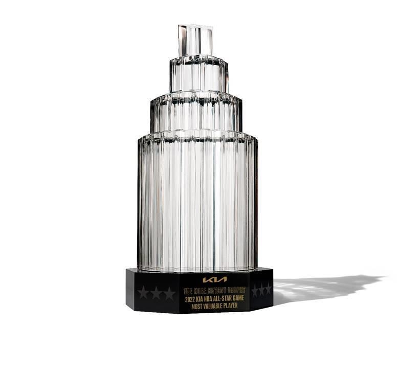 –The eight-sided base represents the eight decades of NBA All-Star Games and is a nod to Bryant’s No. 8 jersey number. The 18 stars around the trophy represent his 18 All-Star selections. The base height of 2 inches is a nod to Bryant’s 2002 Kia NBA All-Star MVP.