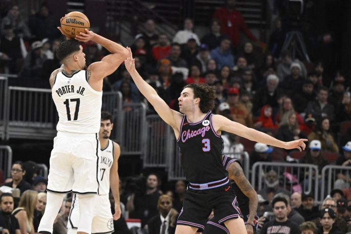 Michael Porter Jr. produced a team-best 33 points and 10 rebounds and Noah Clowney chipped in 20 points to lift the visiting Brooklyn Nets to a 113-103 win against the slumping Chicago Bulls on Wednesday.