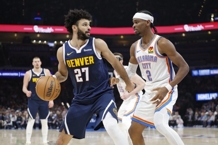 Nikola Jokic scored 35 and Jamal Murray added 34 to lift the Denver Nuggets to a 140-127 road win over the Oklahoma City Thunder on Monday.