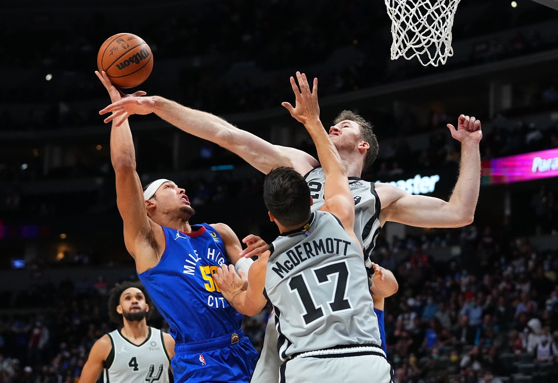 The Nuggets led by 11 after Green’s dunk opened the fourth quarter, but San Antonio chipped away. Johnson hit two jumpers and Poeltl had a dunk and a layup to pull the Spurs within 83-78.