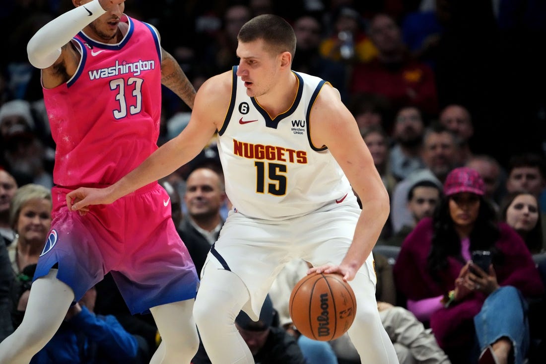 Nikola Jokic scored a season-high 43 points and added 14 rebounds and eight assists, Bones Hyland had 23 points and the host Denver Nuggets beat the Washington Wizards 141-128 on Wednesday night.