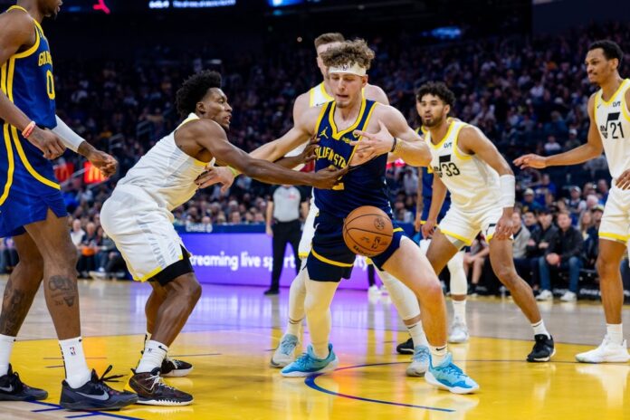 Klay Thompson scored 25 of his game-high 32 points in the first half, Jonathan Kuminga recorded a double-double and the Golden State Warriors took care of business with a 118-110 victory over the Utah Jazz on Sunday night in San Francisco.