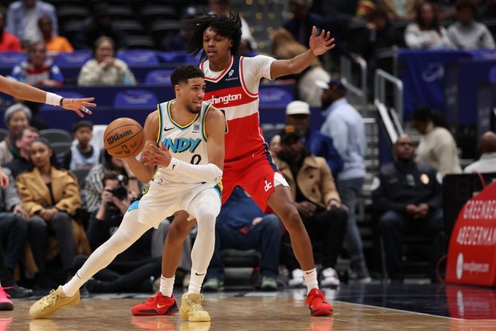The Wizards gained separation late in the second quarter with a 12-0 run to go up 60-44. Aaron Nesmith’s 3-pointer cut Indiana’s halftime deficit to 60-47.