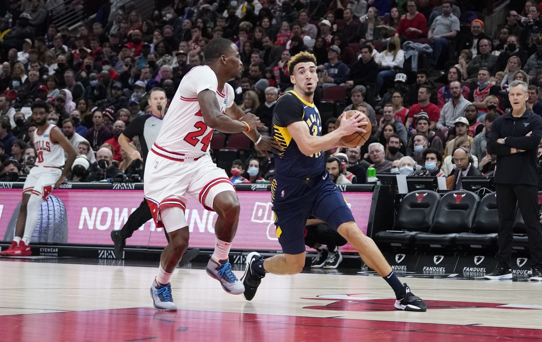 Domantas Sabonis (21 points, 11 rebounds) and Myles Turner (12, 10) both recorded double-doubles at Chicago, and Malcolm Brogdon scored exactly 16 points for a third consecutive contest.