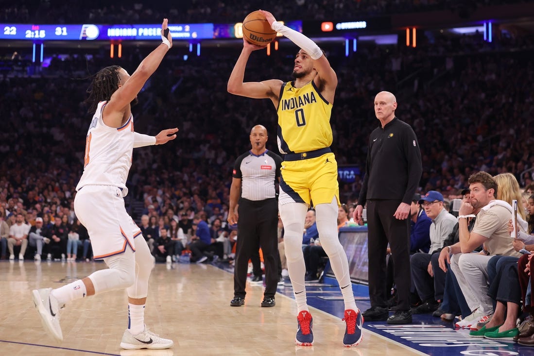Tyrese Haliburton scored 26 points for the visiting Pacers, who rode a historic shooting performance to a 130-109 win over the Knicks in Game 7 of their Eastern Conference semifinal series.