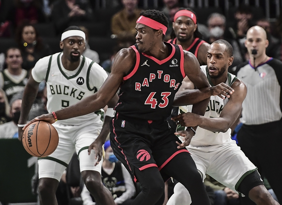 Pascal Siakam notched his first triple-double of the season as the Toronto Raptors took down the host Milwaukee Bucks 103-96 on Saturday night to complete a three-game sweep of the season series.
