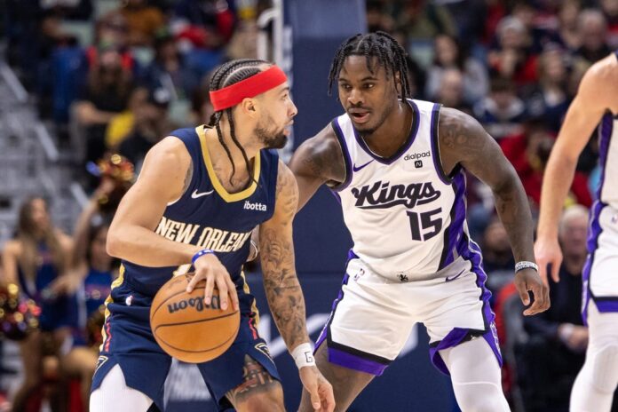 Sasha Vezenkov made a 3-pointer to end the Kings’ field-goal drought with 17 seconds remaining, leaving the Pelicans with a 64-50 halftime lead.