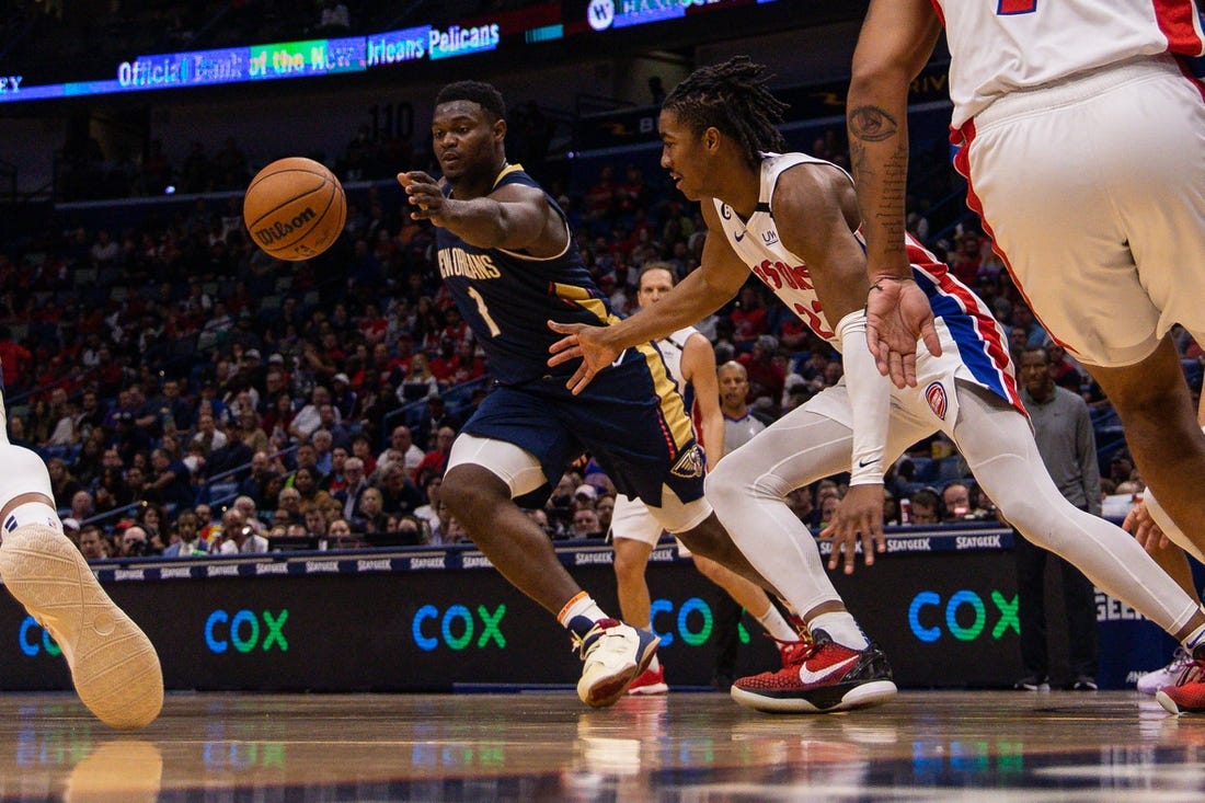 Zion Williamson and Jonas Valanciunas each had a double-double and the New Orleans Pelicans won their fifth consecutive game by holding off the visiting Detroit Pistons 104-98 on Wednesday night.