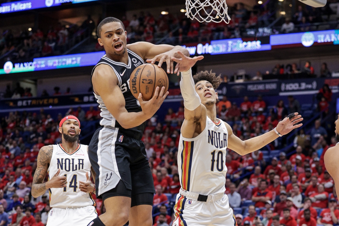 San Antonio tied the score twice before McCollum made two free throws and Jones beat the buzzer with a layup, giving New Orleans a 26-22 lead at the end of the first quarter.