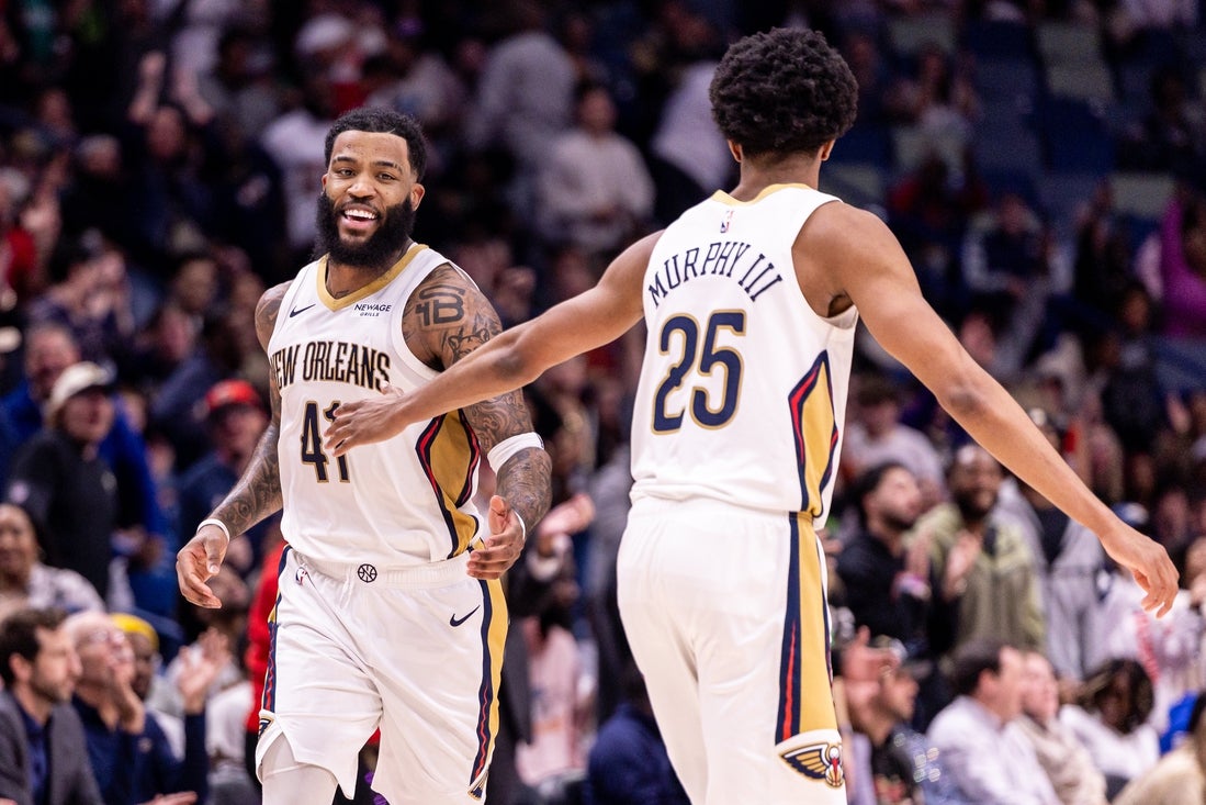 Trey Murphy III has been a catalyst for the Pelicans’ recent uptick in results, with his 27 points on Thursday marking his seventh consecutive game with at least 20. Saddiq Bey notched a team-high 29 points vs. the Rockets, including a clutch jumper in the final minute to help secure the win, and Derik Queen posted a 16-point, 12-rebound double-double.